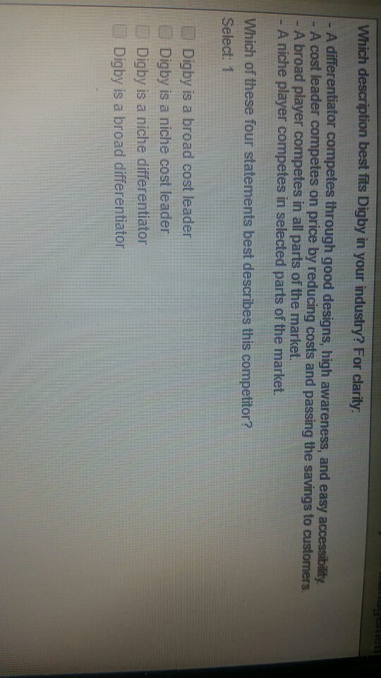 Which Description Best Fits Digby In Your Industry Chegg Com